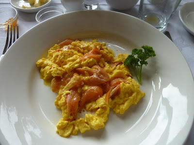 Scrambled eggs and smoked salmon.
